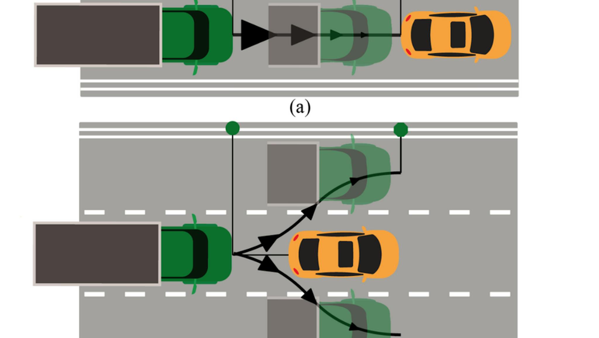 With our method, we can provide this failsafe maneuver but also expend it in the case of a 3 lane road. Let's say that the truck and the car are in the middle lane and the other two lanes are empty in the next 200 meters. A better failsafe maneuver could be to switch lanes.